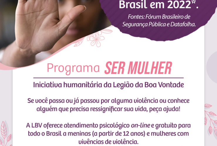 50 mil vítimas sofrem algum tipo de violência todos os dias Mais de 18,6 milhões de mulheres foram agredidas no Brasil, em 2022, segundo dados do Fórum Brasileiro de Segurança Pública e Datafolha. Por dia, esse número representa um estádio lotado. Uma média de 50 mil vítimas sofrendo algum tipo de violência todos os dias. Por isso, a Legião da ...