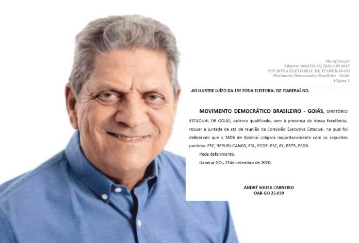 O diretório nacional do Movimento Democrático Brasileiro (MDB), procolocou nesta sexta-feira, 24, o pedido de cancelamento da candidatura de Wellington Rodrigues da Silva ‘Wellington Baiano’ à prefeitura de Itaberaí. A decisão assinada pelo presidente do diretório nacional do partido, Baleia Rossie foi encaminhada à 15ª zona eleitoral de Itaberaí às 11h23, de ontem. A Justiça Eleitoral goiana acatou o pedido ...