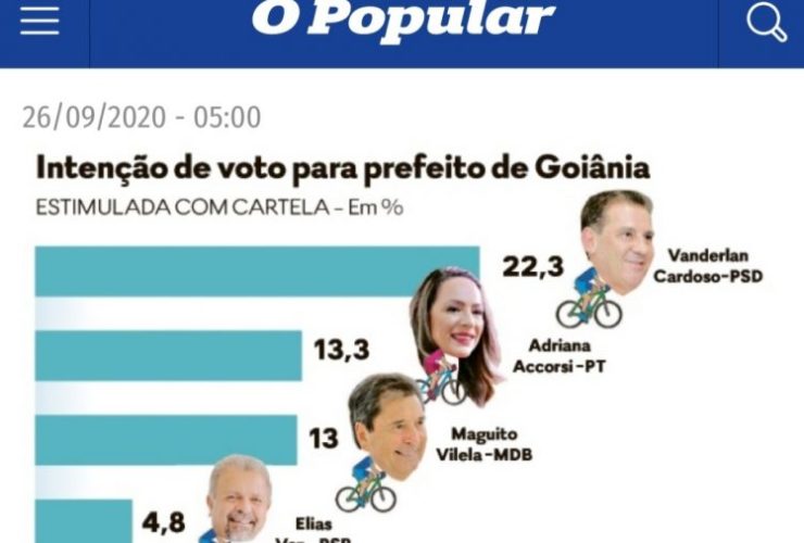 A primeira pesquisa eleitoral do Instituto Serpes para o pleito municipal em Goiânia aponta Vanderlan Cardoso (PSD), Adriana Accorsi (PT) e Maguito Vilela (MDB) como principais postulantes à Prefeitura de Goiânia. O levantamento da opinião popular indica vitória de Vanderlan Cardoso (PSD) em um eventual cenário de 2º turno contra os candidatos Adriana Accorsi (PT) e Maguito Vilela (MDB). Em ...