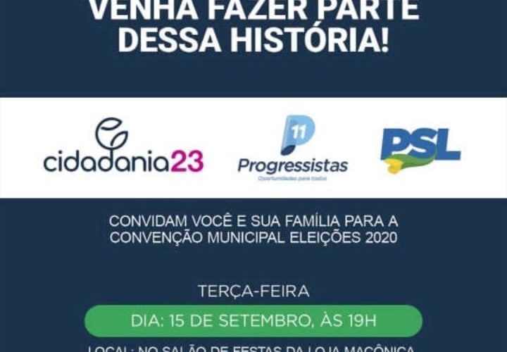O Cidadania do município de Fazenda Nova, convida a população local para participar da convenção partidária que confirmará o nome de Marcus Vinícius Azeredo Costa como candidato a prefeito, pelo Cidadania A chapa majoritária contará com o apoio do Progressista e do PSL. O evento será realizado ás 19 horas desta terça-feira, 15, no salão de festas da Loja Maçônica ...