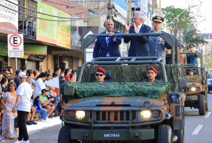 Acompanhado do governador Ronaldo Caiado e do sub-comandante de Operações Especiais do Exército Brasileiro em Goiânia, coronel Rui Martins da Mota, Rogério Cruz passou em vistoria às tropas e hasteou as bandeiras para dar início ao desfile Sob uma recepção de mais de 10 mil pessoas no Centro de Goiânia, o prefeito Rogério Cruz participou das comemorações do 7 de ...