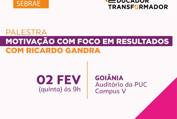 Evento no dia 02/02 terá palestra com o professor e escritor Ricardo Gandra e também terá divulgação do Prêmio Educador Transformador O Sebrae Goiás convida todos os diretores e coordenadores das escolas municipais de Goiânia a participarem da assinatura do termo de adesão da Secretaria Municipal de Educação ao Programa Nacional de Educação Empreendedora (PNEE) para o ano de 2023. ...
