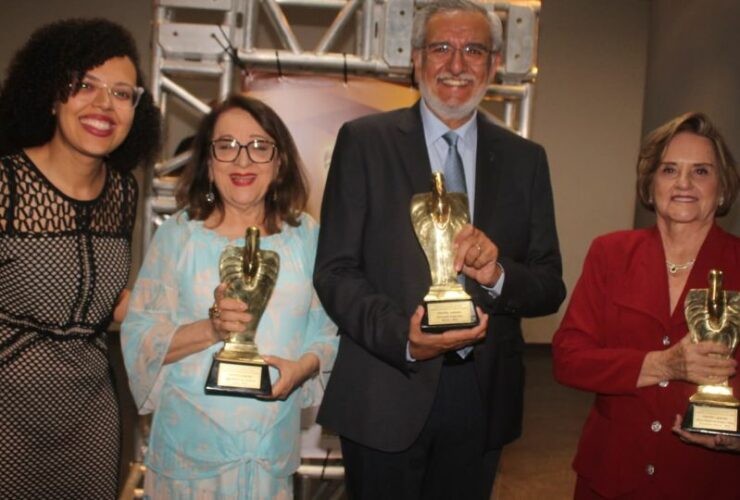 Foram agraciados com o prêmio principal a escritora Lêda Selma, a professora Nancy Ribeiro e o músico e compositor Fernando Passos Cupertino de Barros. Também foram entregues 18 Medalhas de Mérito Cultural, 47 Diplomas de Destaque Cultural do Ano, e três Comendas Especiais Com casa cheia, foi celebrada na noite desta terça-feira (09/05), no Teatro Goiânia, a solenidade de entrega ...