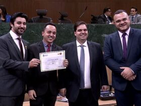 Equipe da Escola do Legislativo com deputado Lissauer Vieira